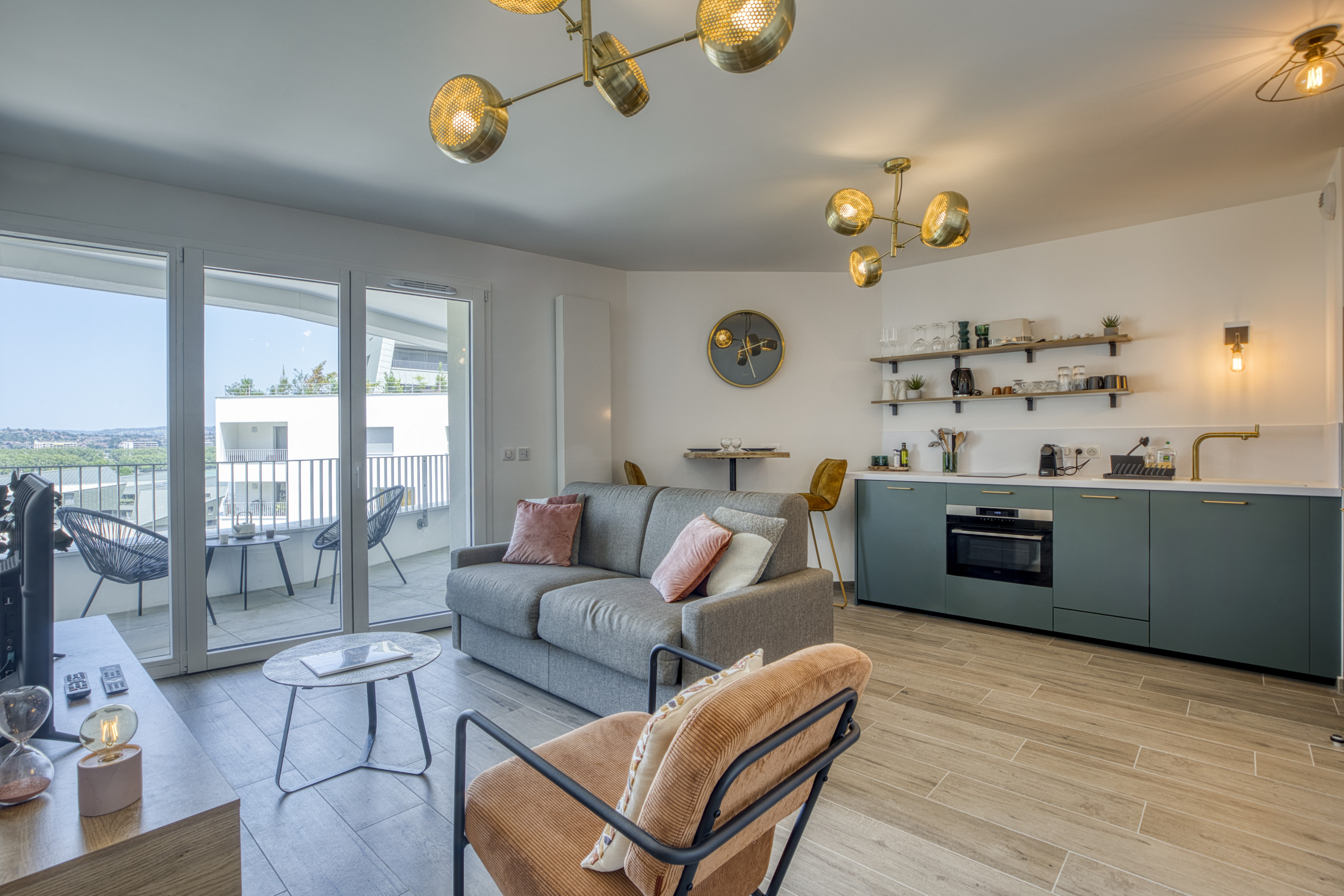 Alojamiento de 44 m² amueblado con gusto y moderno, con vistas al mar y a la montaña.
