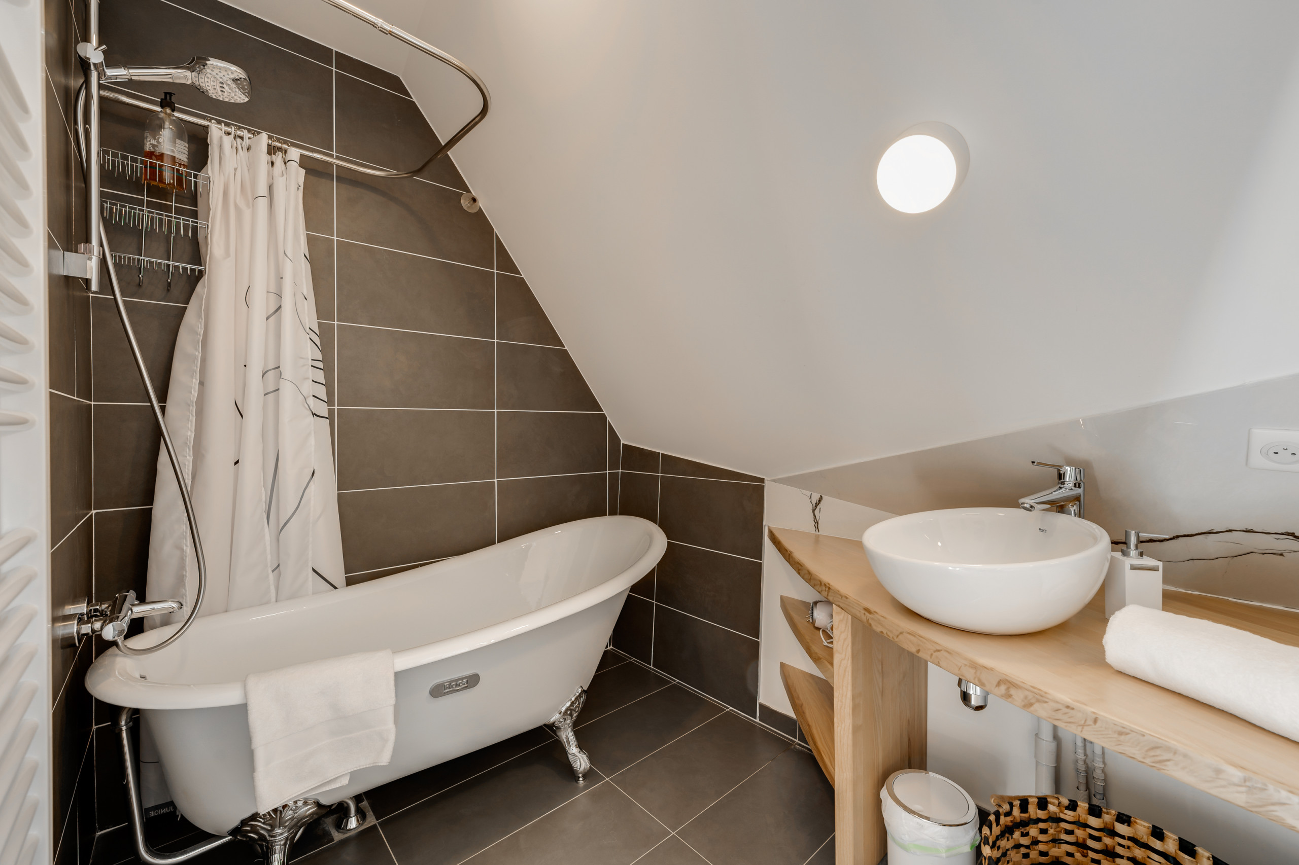 - Salle de bain moderne avec douche.